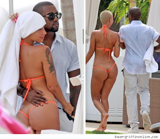 Kanye, Ambar Rose y un trozo de hilo de color naranja colocados estratégicamente absorbido por el sol en una piscina de Miami Beach ayer.